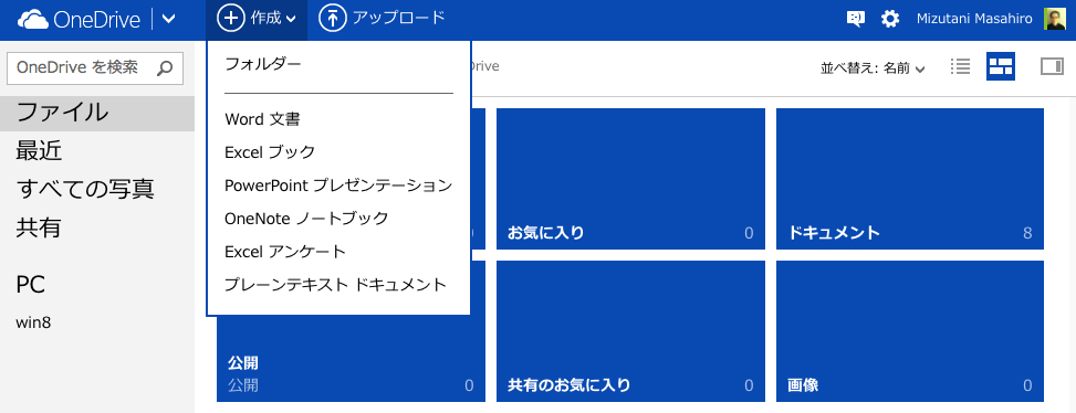 OneDriveからOffice文書を作成する