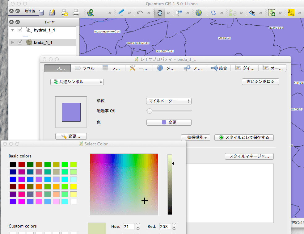 QGISはWindows/Mac OS/Linux/Androidなど異なるOSでも,大差ない操作で利用できるGNU open source software である。 以下の説明は、MaxOS 10.8.1上のGQIS ver.1.8.0-Lisboa に基づいているが、他のOSでもほとんど同じはずだ。1つのShapeファイル
