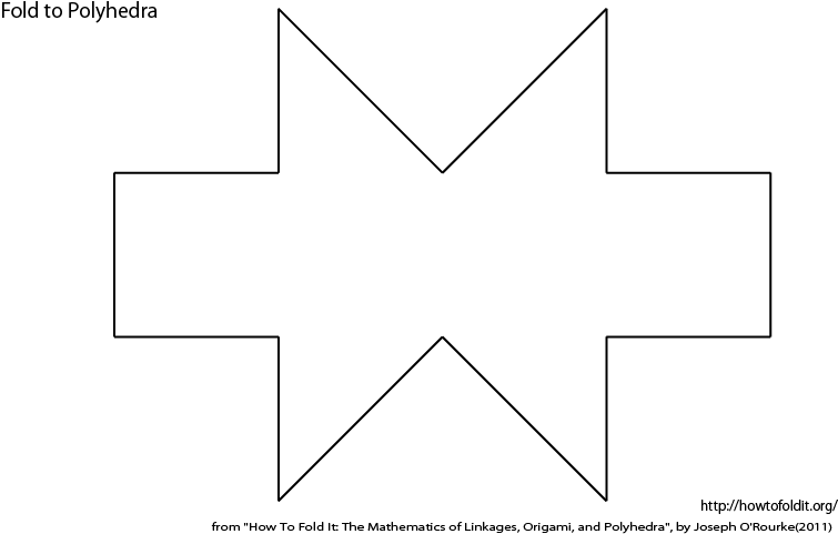 すべての凸多面体は辺展開図を持つかは未解決であるが、以下の星展開のように一般展開図なら持つことが知られている。