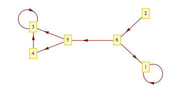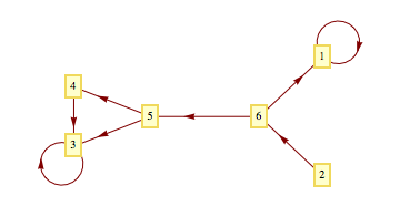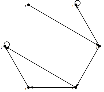 dg = GraphPlot[{1 -> 1, 4 -> 3, 5 -> 3, 3 -> 3, 5 -> 4, 6 -> 1, 2 -> 6, 6 -> 5},