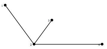 GraphPlotに与える辺情報は、隣接行列によって与えることができる。 いまの例の場合、隣接行列は次のようである。