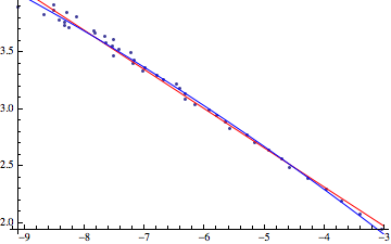{{-Log[100000/4737], Log[7]}, {-Log[50000/1659], Log[8]},