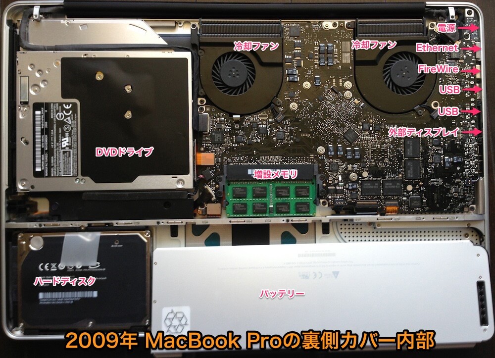 左の写真は2009年のMacBook Proの裏面カバーを開けた様子である。 今日では、ノートパソコンもスマートフォンも自分で分解修理することなどは限りなく不可能である。 ネジ止めでなく接着剤を多用し、細かい部品を詰め込んだ電子機器の姿である。 その場合、さまざまなデバイスを追加するのは、製品化された機械を限られた接続コネクタ(たとえばUSBポート)などにケーブルを差し込むていどに限られてしまう。
