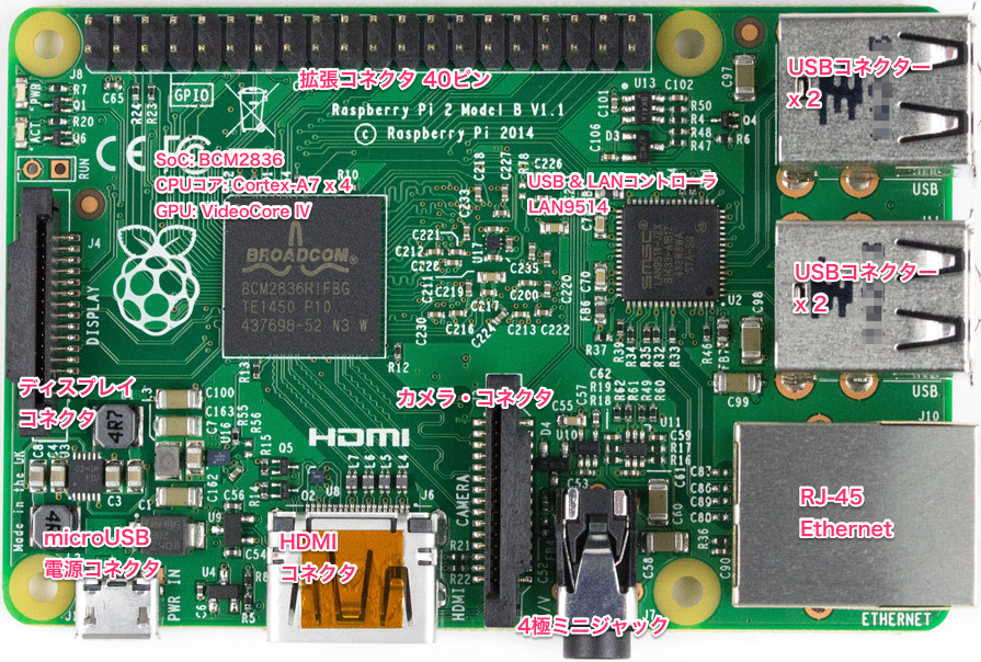 通販などでRaspberry Pi2 modelBは5000円程度で購入することができる。 モニタやキーボードなどは付属していない。 ただし、ネットワーク経由で操作するか、HDMIコネクタ(必要ならVGA/HDMI変換)を介して適当なモニタおよびUSB接続のキーボードやマウスを接続すれば、通常のコンピュータと全く同等に利用することができる。 ディスク装置として裏側に装着されるmicroSDカード(8GB以上)を使う。 電源としてMicroUSBから給電するが、電源はバッテリでも動作するので応用範囲は非常に広範に渡っている。
