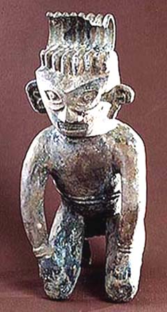 四川三星堆一号坑出土青銅跪坐人像(殷代中期、BC1500〜1300) |