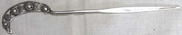 三日月形の頭をした銀製の簪である。