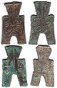 青銅平首方足布錢四種(戦國時代、BC476〜256)