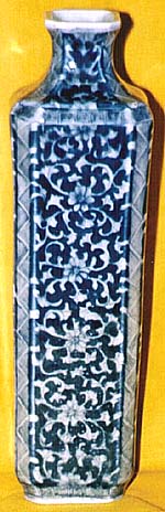 青花白抜唐草文角瓶(民國時代、AD1912〜1949)