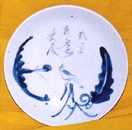 秋葉と鳥に題句が添えてあり、高台内には民窯銘で