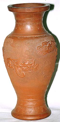 宜興窯朱泥浮彫龍文觀音瓶(民國以後、AD1950〜1990)