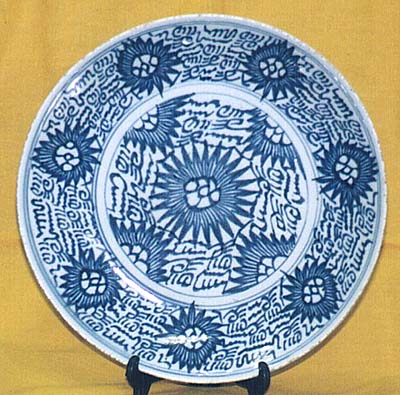 青花線描花卉文盤(清後期時代、AD1851〜1874)