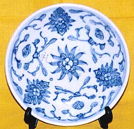 青花淡描花草文皿V(清中期時代、AD1796〜1850)
