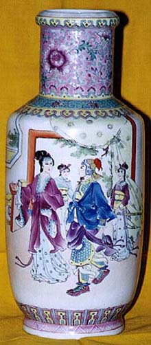 倣清粉彩花木蘭出陣圖瓶(現代、AD1990〜1999)