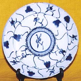 当時の代表的紋様の民窯青花皿である。面
