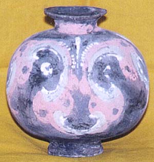 灰陶加彩雲氣文蛋(繭)形小壺(前漢時代、BC206〜AD23)