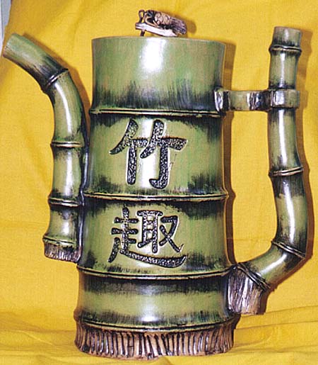 臺彎鶯歌窯青竹断節形大茶壺(現代、AD1990〜1999) |