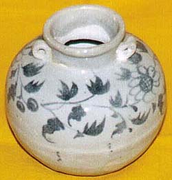 景徳鎭青花菊花文雙耳小壺(元時代、AD1280〜1367)