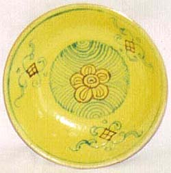 黄釉地粉彩團花文小皿(嘉慶年間、AD1796〜1820)
