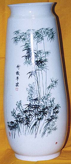 景徳鎭緑墨彩竹圖瓶(現代、AD1998)