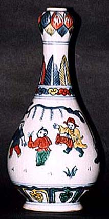 闘彩唐子文蒜口長頸瓶(明後期時代、AD1573〜1644)
