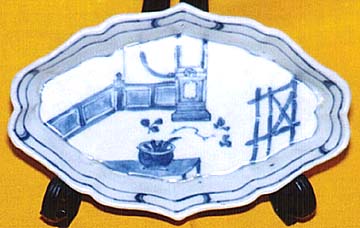 外銷瓷青花赤繪菱形輪花縁小盤(清初期時代、AD1644〜1795)