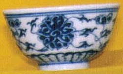 青花纏枝牡丹文杯(清末期時代、AD1875〜1911)