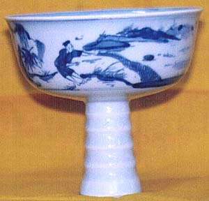 である。碗の模様は、明末の民窯碗に見られる柳下