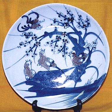 青花釉裏紅喜鵲登梅文盤U(清後期時代、AD1851〜1874)