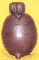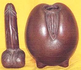 女陰形の水盂に水を入れ、スポイト原理の陽根形で水を吸い上げ