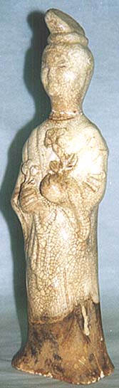 灰陶白釉婦人俑(隋時代、AD589〜617)