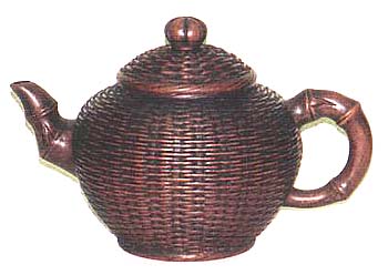 宜興窯竹籠形茶壺(民國以後、AD1950〜1990) |