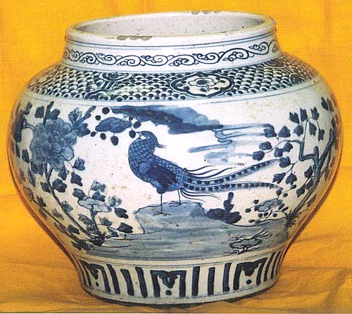 青花花鳥文壺(正徳・嘉靖年間、AD1506〜1566)
