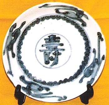 青花雨龍壽字文皿(萬暦年間、AD1573〜1619)