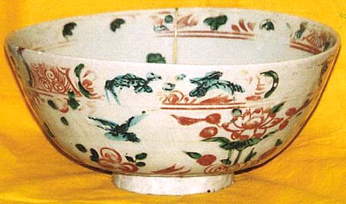 呉州手赤繪花鳥文鉢(明末期時代、AD1621〜1661)