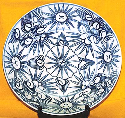 青花向日葵文皿(清末期時代、AD1875〜1911)
