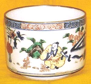 青花五彩人物文火入(清初期時代、AD1662〜1795)