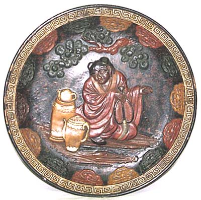 宜興窯倣雕漆釉仙人文盤(清後期時代、AD1851〜1874)