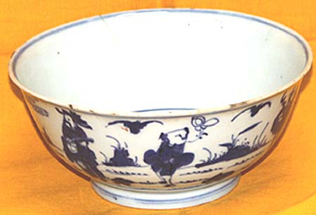 青花三仙人圖鉢(康煕年間、AD1662〜1722)