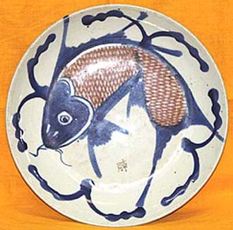 青花釉裏紅大魚文中皿(同治年間、AD1862〜1874)