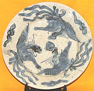 呉州手青花鳳凰文皿T(明末期時代、AD1621〜1661)