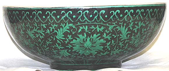 黒地緑彩纏枝牡丹文鉢(清末期時代、AD1875〜1911)