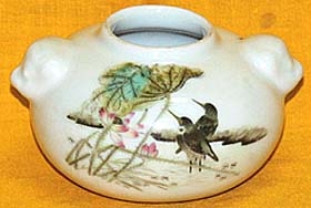 粉彩花鳥文獅子耳水盂(民國時代、AD1912〜1949)