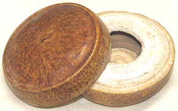 平高台の唐代を代表する形の、褐釉合子で、微かでは