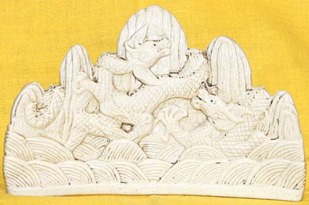 白磁浮彫海波雙龍文硯屏(清末民初時代、AD1875〜1921)