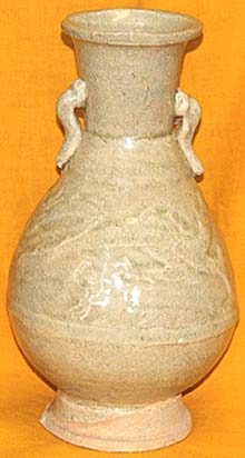 福建窯青白磁龍虎文有耳瓶(南宋時代、AD1127〜1279)