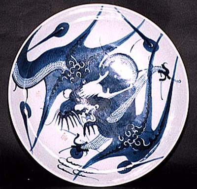青花過墻龍文盤(雍正年間、AD1723〜1735)