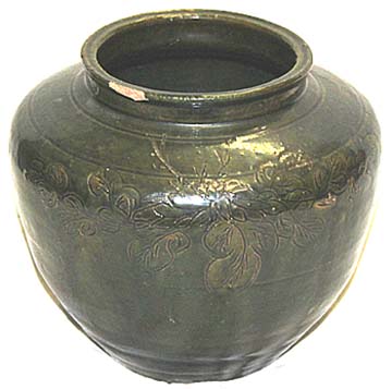 緑釉劃花牡丹文壺(遼時代、AD907〜1125)