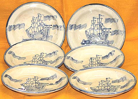 青花寶船文鍔縁皿六枚(民國以後、AD1950〜1990)