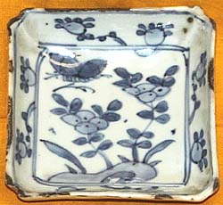 青花花卉文方形小皿(明末期時代、AD1621〜1661)