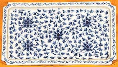 青花花草文角盤(清後期時代、AD1851〜1874)